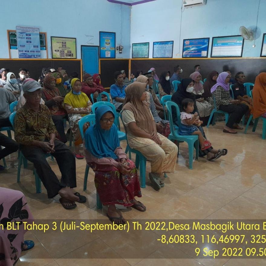 Masbagikutarabaru.desa.id : Sebanyak 196 Keluarga Penerima Manfaat (KPM) di Desa Masbagik Utara Baru Kecamatan Masbagik Kabupaten Lombok Timur, menerima Bantuan Langsung Tunai Dana Desa (BLT-DD) sebesar Rp. 300.000,- (Tiga Ratus Ribu Rupiah) per KK untuk bulan juli, agustus dan september, total 3 bulan adalah sebesar Rp. 900.000,- (Sembilan ratus ribu rupiah). Penyerahan Bantuan Langsung Tunai Dana Desa (BLT-DD) tersebut dilaksanakan di Aula Kantor Desa Masbagik Utara Baru, Jum'at (09/09/2022).