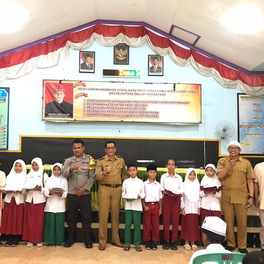 Dalam acara tersebut Kepala Desa Masbagik Utara Baru (Khaerul Ihsan, S.H, M.H) menjelaskan bahwa bantuan ini sudah dianggarkan setiap tahun, "Kami pemerintah Desa setiap tahun memberikan anggaran stimulus untuk sekolah-sekolah yang ada di wilayah kami terutama untuk siswa-siswi miskin berprestasi yang kurang mampu".